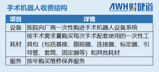 从海外成熟市场和国内现状来看,手术机器人收费组成分为三部分——设备+耗材+服务。