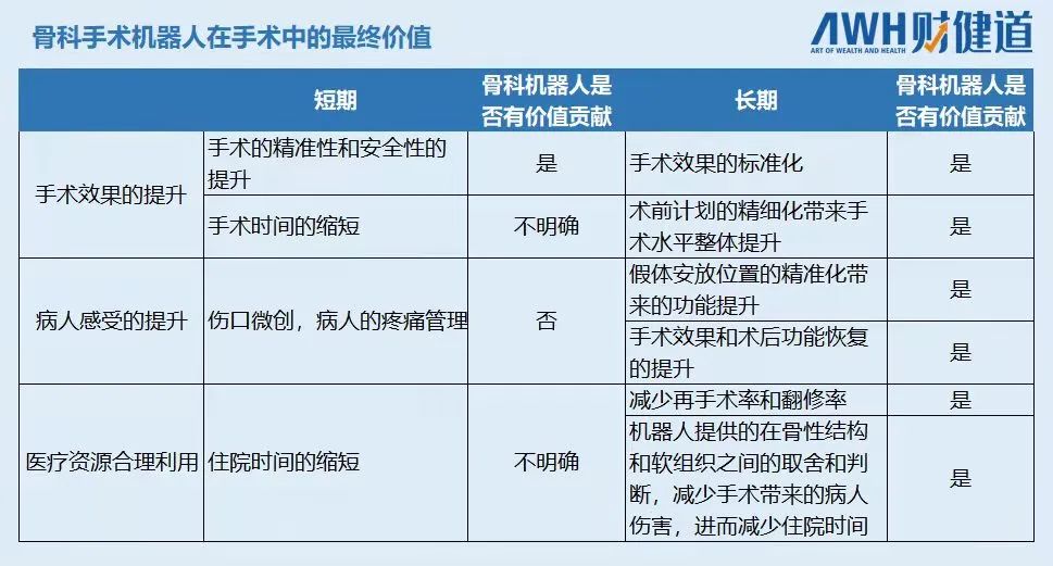 因此,如果长期角度分析,膝关节手术机器人的卫生经济学价值则更加明显。