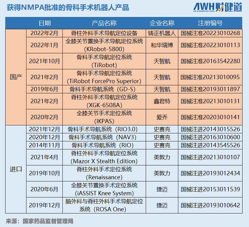 《财健道》粗略统计发现,2021-2023的三年间,国内预计将有18款骨科手术机器人“拿证”上市,这一领域产品创新正处于爆发期。
