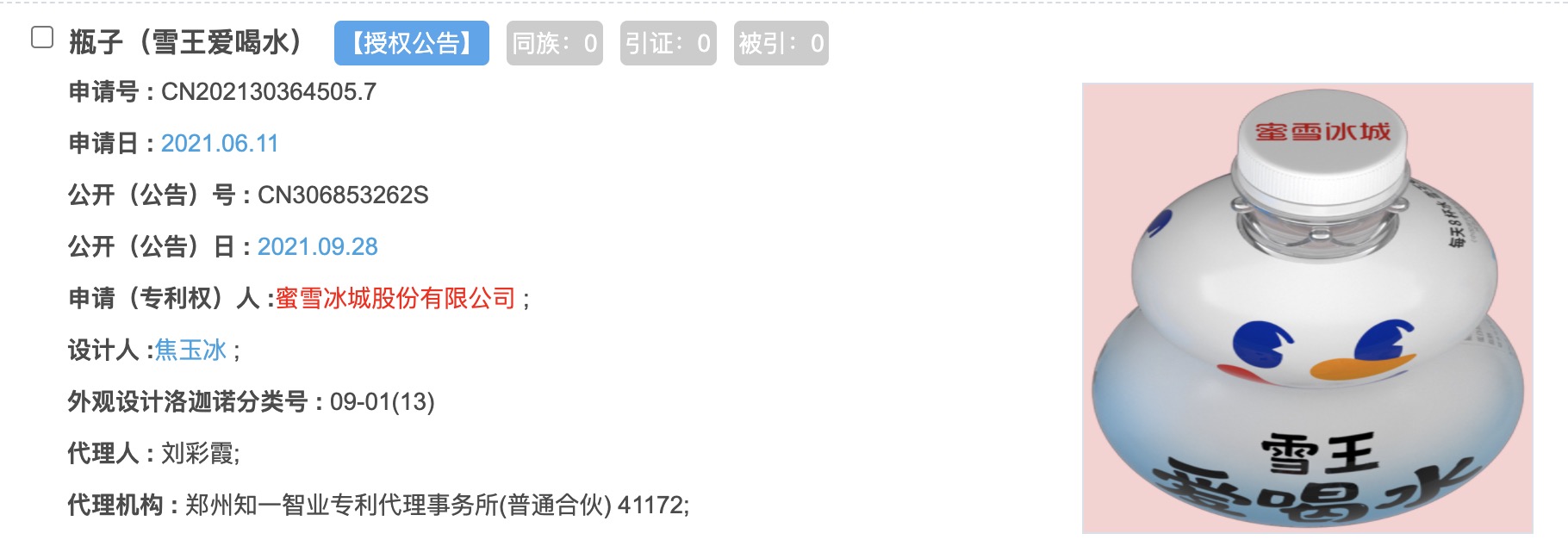 但是从瓶装饮料的大市场来看,蜜雪冰城并非首次传出相关意向。稍早前,蜜雪冰城注册的“雪王爱喝水”瓶子就已获得专利授权。专利摘要图显示,瓶体有“饮用纯净水”字样。不少人据此猜测,蜜雪冰城将进入瓶装饮用水领域。