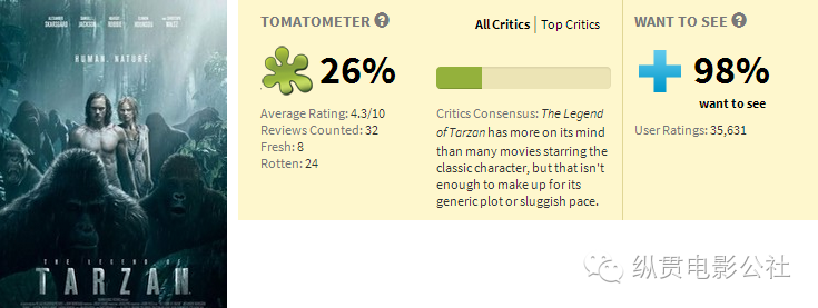 烂番茄的新鲜度只有26%,看来真的是剧本才是关键啊。
