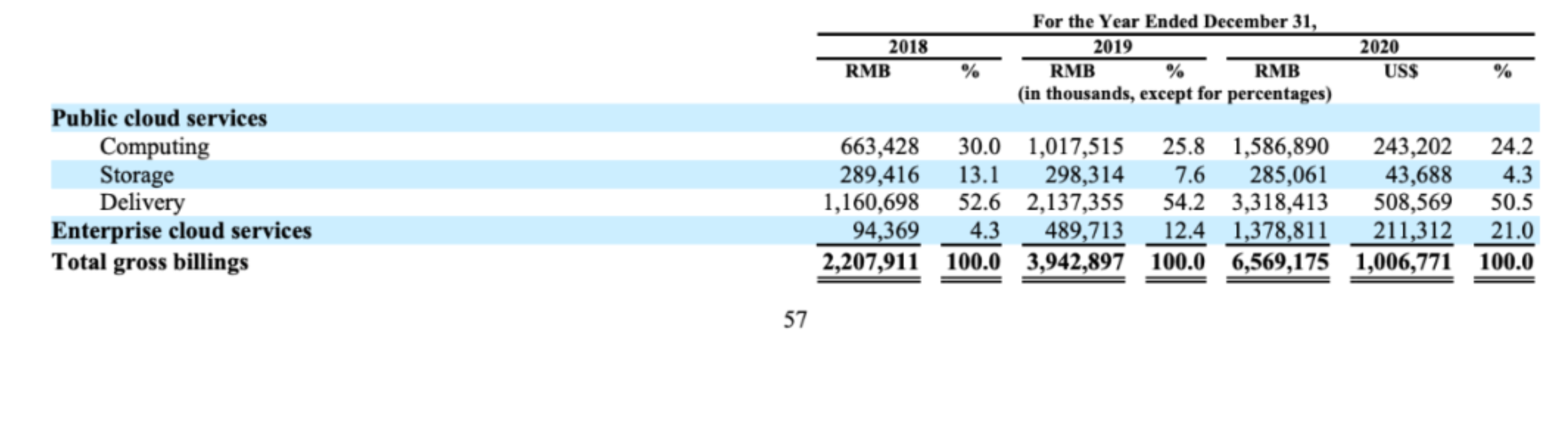在年报中的数据口径,实际上是交付(Delivery)业务在公有云和企业云两块业务中的占比。