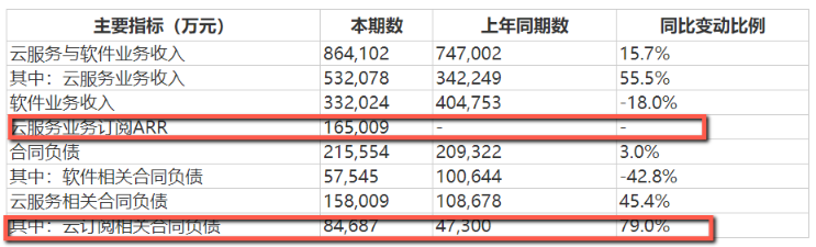 由于SaaS业务的经常性收入来自客户订阅,是未来持续可获得收入,具有稳定、可预测、高度确定的特点,因此Saas企业主要观察的是ARR(年度经常性收入)这一项指标。从2021年年报中可以看到,用友网络云服务业务ARR实现16.5亿元,2020年同期该项业务营收为0,也就是说2021年公司才起步开展云服务订阅业务。另外,云订阅相关合同负债显示同比增长79.0%,为公司订阅收入持续高速增长以及业务收入结构持续升级奠定了基础。