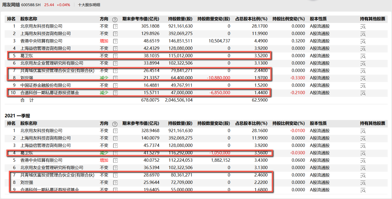 在大股东增持背景下,其他股东却悄然撤退。用友网络去年三季报十大股东显示,在公司实施回购期间,第五大股东混沌道然的葛卫东减持了128万股;第七大股东共青城优富投资管理合伙企业总共减持52万股;第八大股东原点资产的刘世强减持831万股;第九大股东上海合道减持800万股。换句话说,用友网络用公司资金回购1770万股的同时,四大股东合计抛售了1812万股,减持时间和金额上十分巧合。而且,这四大股东减持均未超过5%,不需要公告。