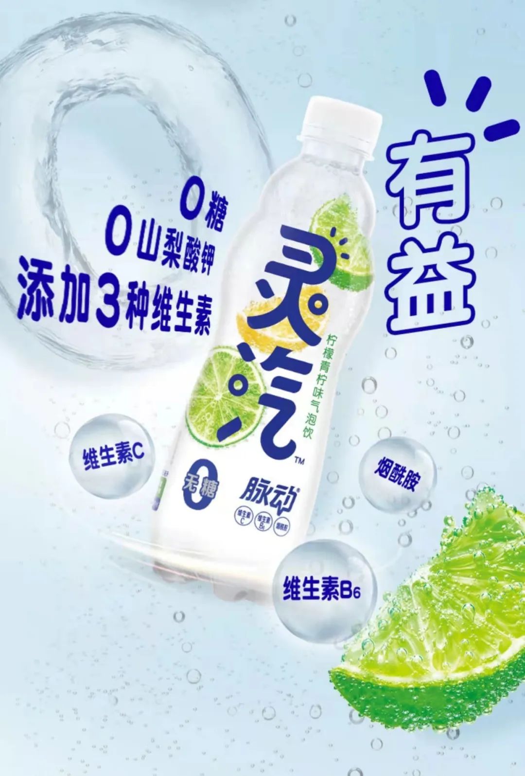 灵汽的每个口味都由两种水果叠加而成(香橙+血橙、柠檬+青柠),进一步提升了零糖饮料的口感。此外,还添加了3种维生素(维生素B6、维生素C和烟酰胺),延续了脉动最初推出时的功能添加成分。