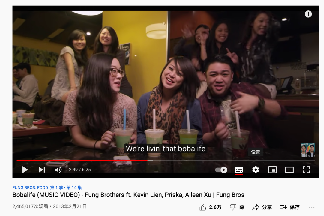 不过直到2013年冯氏兄弟(The Fung Brothers)拍摄的歌曲Bobalife在Youtube上大火,这个流淌在亚裔年轻人血液中的饮品才被美国主流社会大面积关注。