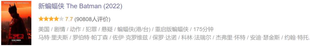 显而易见,不管是影评人、影迷群体还是普通观众,均对《新蝙蝠侠》青睐有加。