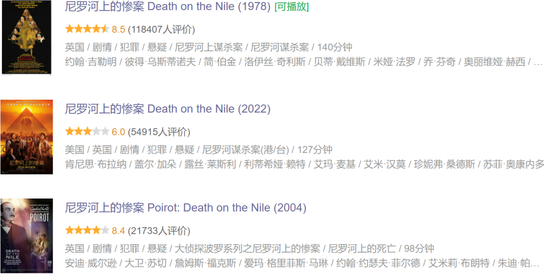 △ 三版《尼罗河上的惨案》豆瓣评分对比