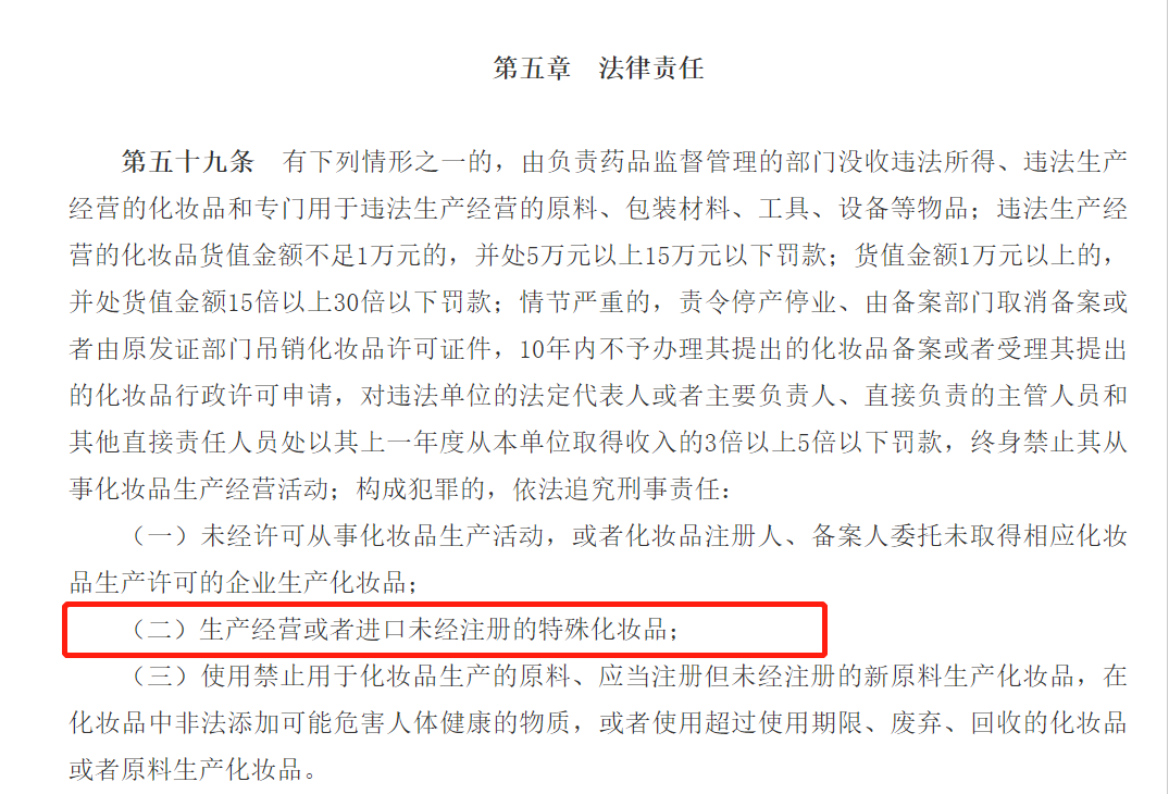而去年1月落地的新条例,则将“违法所得”调整为以“货值金额”作为处罚依据。按照新规,生产经营或者进口未经注册的特殊化妆品的,“货值金额不足1万元的,并处5万元以上15万元以下罚款;货值金额1万元以上的,并处货值金额15倍以30倍以下罚款”。此外,严重的将终身禁业,构成犯罪的还将被追究刑事责任。