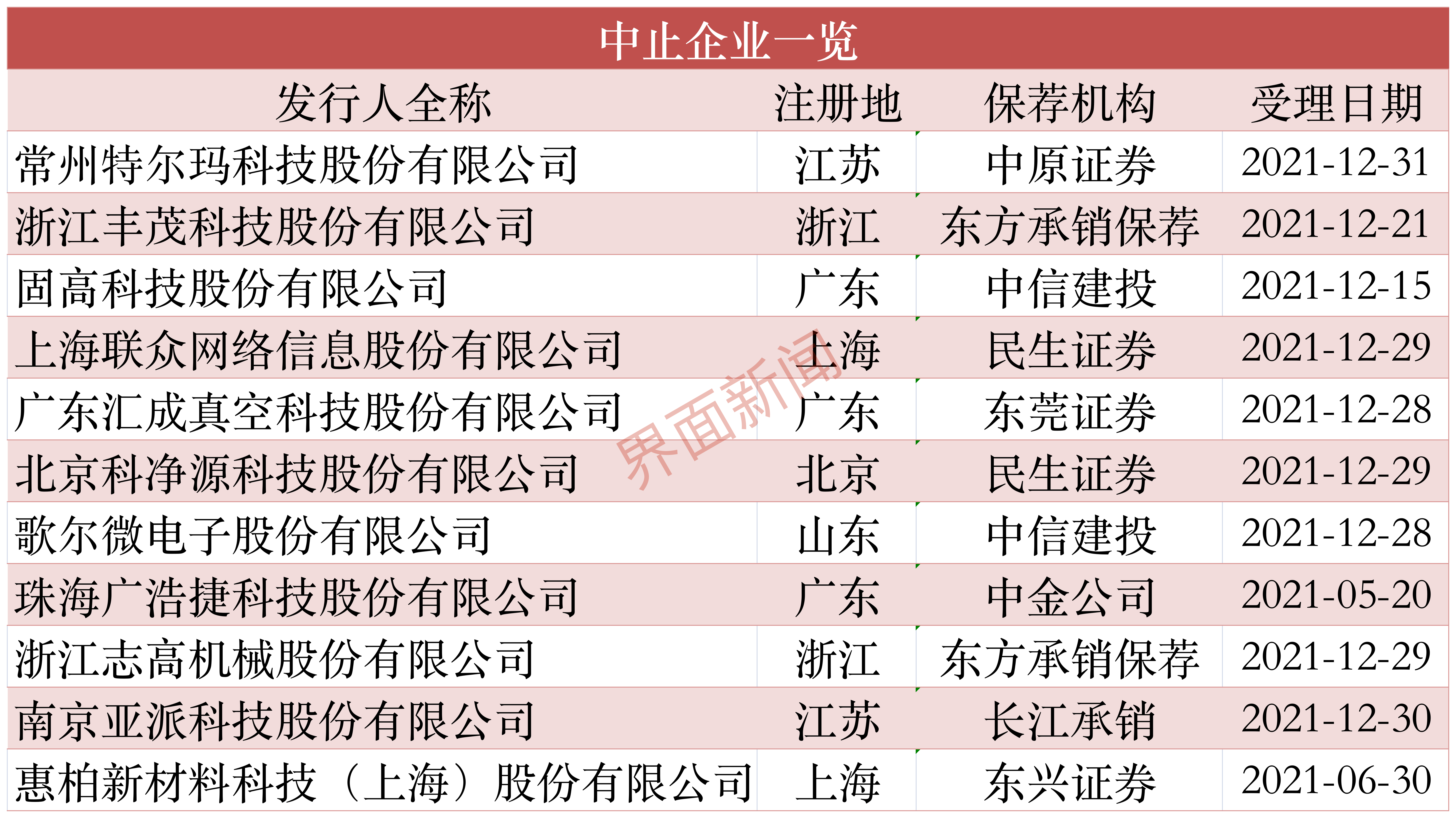 据界面新闻了解,这11家公司均处于首轮问询阶段,发行人及其中介机构因受疫情影响,无法在规定时限内完成尽职调查、回复审核问询等工作。