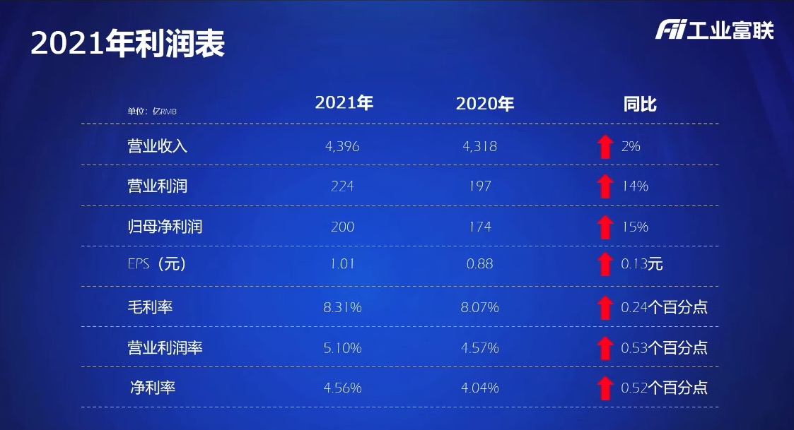 3月22日晚,工业富联(601138.SH)披露2021年度业绩报告。