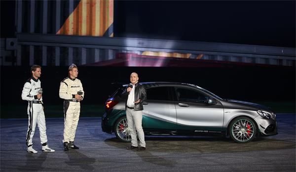 活动当晚,AMG家族用别具匠心的赛车发车倒计时方式宣告盛典启幕,同时令人肾上腺素飙升的引擎轰鸣声不断震撼着现场观众,带领他们进入到AMG动感的极速世界。在光影交织的赛道上,米卡·哈基宁与马洛·晏高分别驾驶着AMG C 63轿车登场,并与驾驶着梅赛德斯-AMG A 45冠军限量版而来的梅赛德斯-奔驰(中国)汽车销售有限公司AMG大中华区总监何睿思先生共同诉说着AMG的品牌故事。