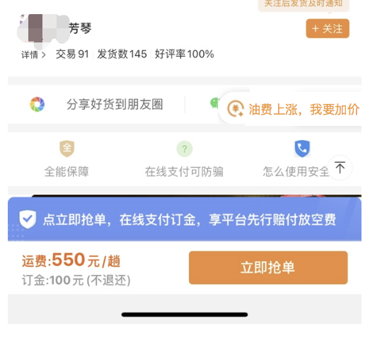 在运满满和货车帮的货主端APP上,货主发货时,平台会主动提醒货主考虑油价上涨因素,适当提高发货价格。同时,通过赠送发货卡等措施鼓励货主在运价中加入油价补贴。初步统计,该功能上线以来,货主发货时主动为司机加价累计超过20万次。
