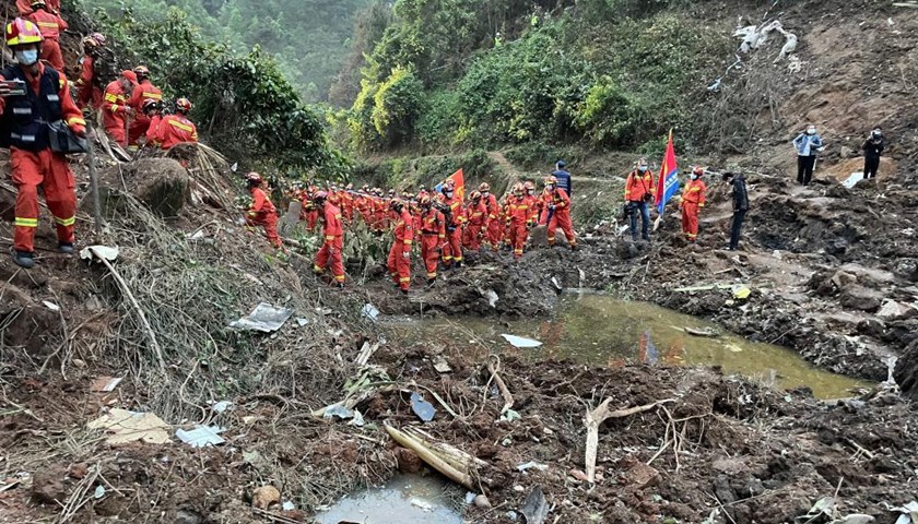 今天上午8时,广西消防救援总队集结300余名消防救援人员实施现场搜寻工作,目前搜索工作仍在紧张进行中。受短时强降雨的影响,事故现场存在小规模山体滑坡、塌方的风险,在一定程度上对现场救援、搜寻工作造成不利影响。