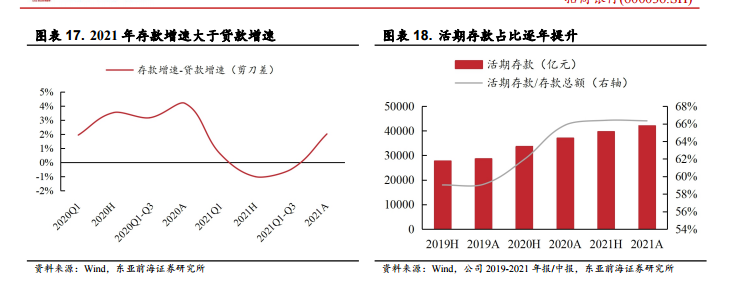年报显示,2021年招行客户活期存款贡献最大增长。客户存款余额5.9万亿元,比2020年末增加7047亿元,主要是低成本核心存款增长拉动。核心存款日均余额5万亿,较上年增加18.35%。活期存款日均余额3.7万亿元,较上年增长18.92%。