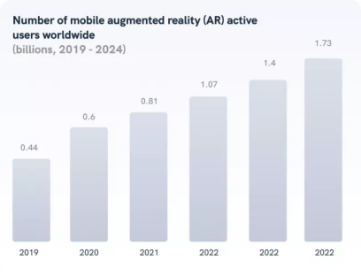 根据数据统计,2020年,美国每月有8310万消费者使用AR,61%的消费者表示他们更喜欢有AR广告体验的零售商;71%的消费者表示,如果使用AR,他们会更频繁地购物。每天有10亿人使用AR应用程序,预计2024年将会有将近20亿移动AR用户。在VR和AR功能的驱动下,品牌将获得更多的潜在客户与机会。