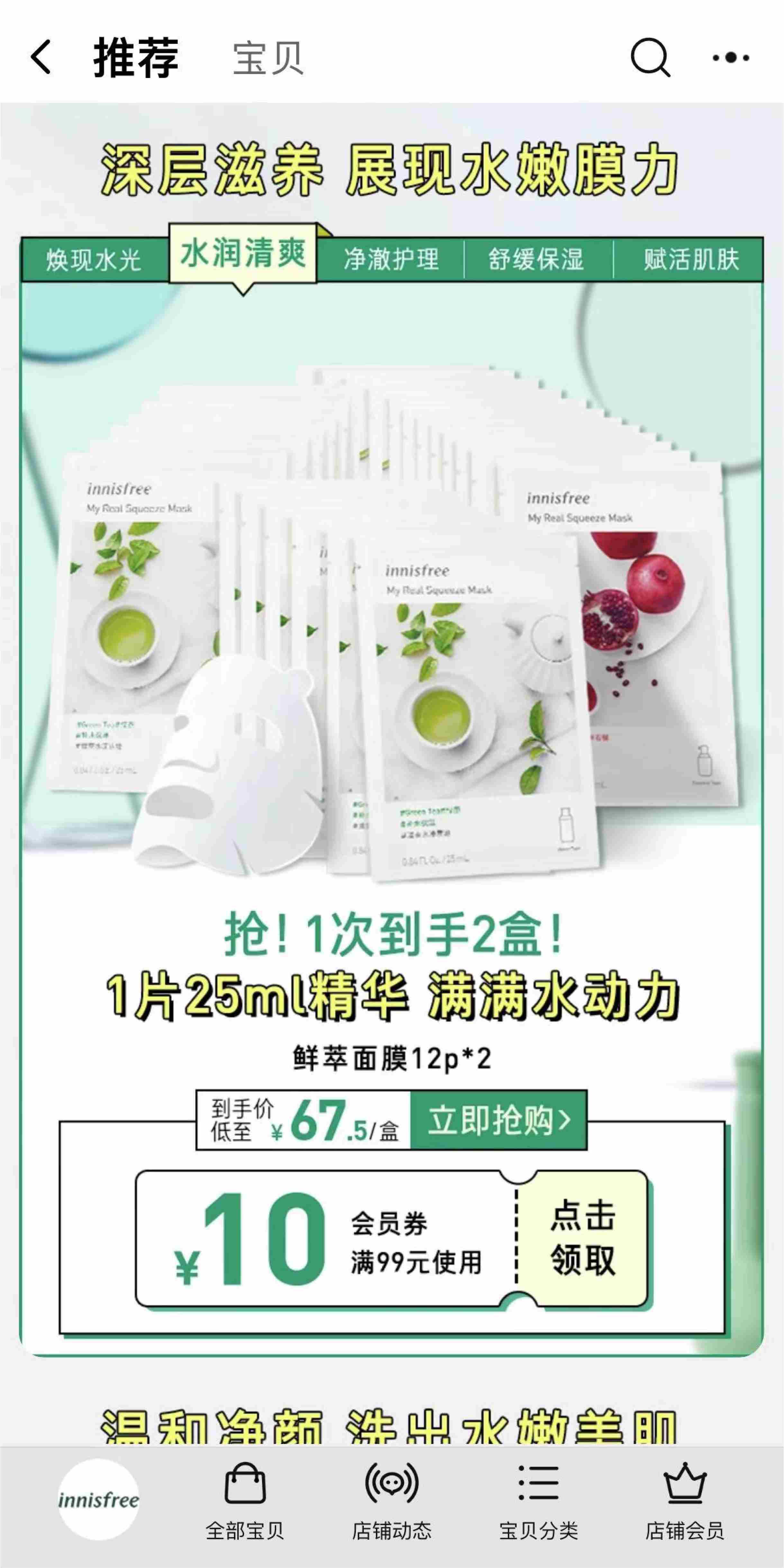 在谜尚天猫官方旗舰店,大红BB、红气垫BB,自动眉笔等爆款产品在不久前的3.8档营销连天开展“限时买一赠一”。悦诗风吟天猫旗舰店的活动力度也不小,宣传标语为:“抢!1次到手2盒”,消费者入群领券立减90-200元。