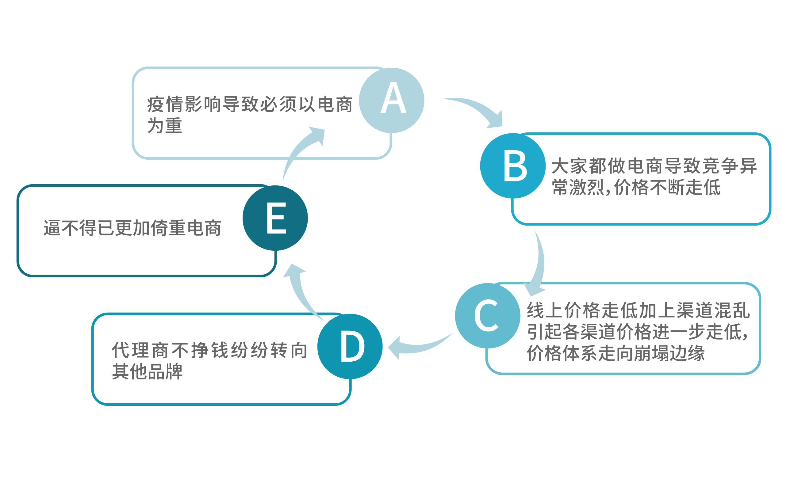 看起来,韩妆在中国市场似乎陷入了“疫情影响导致必须以电商为重——大家都做电商导致竞争异常激烈,价格不断走低——线上价格走低加上渠道混乱引起各渠道价格进一步走低,价格体系走向崩塌边缘——代理商不挣钱纷纷转向其他品牌——逼不得已更加倚重电商”的死循环。