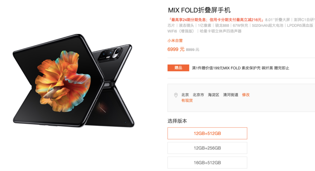 以首款折叠屏手机MIX FOLD为例,起售价9999元,上市不足一年,官网定价已跳水3000元至4000元。双十一旗舰,折价更甚。