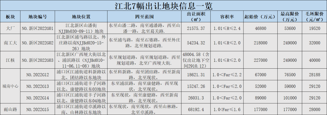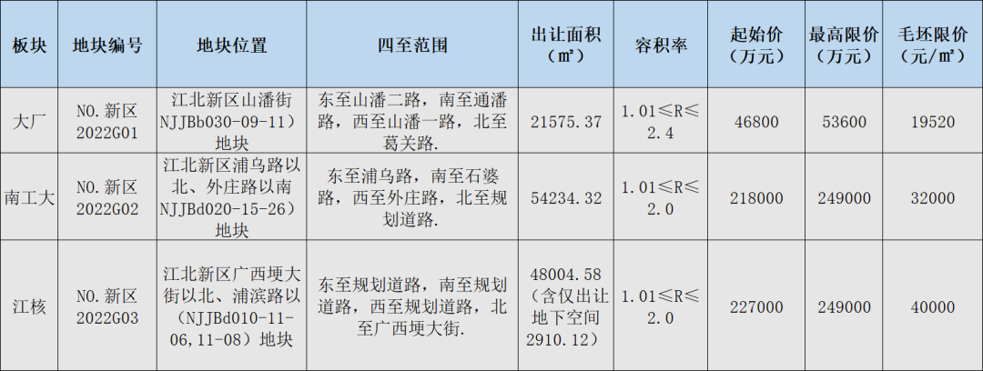 本次直管区共出让3幅地块,江核1幅、南工大板块1幅、大厂葛塘1幅。