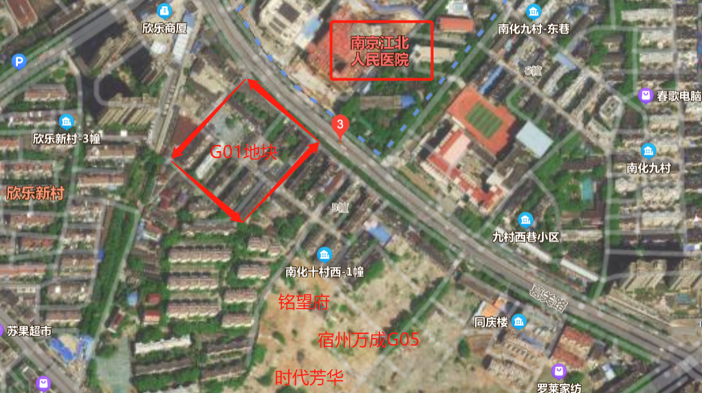 靠近星河时代、金陵星图等项目,目前星河时代含包均价30000元/㎡。项目左侧规划一幅教育用地,地块东南侧有正在建设的江北金陵饭店、鼎业宜景国际中心,周边还有在建的地铁11号线。