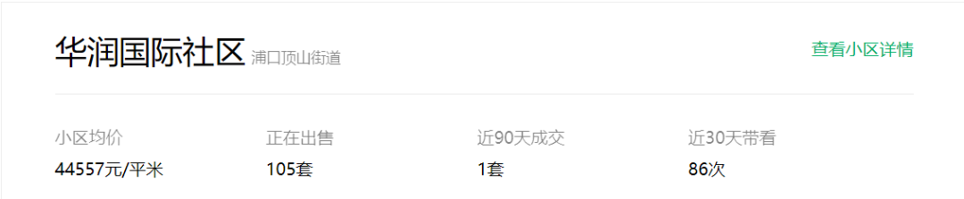 该地块与晴翠府一街之隔,目前晴翠府含包均价在4万/㎡左右,距离G03不远的晴樾府毛坯限价35000元/㎡,放风价也在4万/㎡左右,周边二手房有华润国际社区,据链家网显示,目前该小区二手房均价在44557元/㎡,近一年的成交单价最高达48395元/㎡!