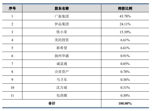 交易预案显示,除了广新集团之外,美的投资和新希望分别持有伊品生物的6.61%股权,也都成为上市公司的本次交易对方。美的投资的实控人是何享健,而新希望的实控人则是刘永好。此外,闫晓平、铁小荣夫妇控制的伊品集团是伊品生物的第二大股东。第八大股东合星资产(持有标的公司0.78%股权)因未向星湖科技及伊品生物发出参与本次交易的意向,而未纳入本次交易。
