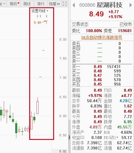 截至3月24日收盘,星湖科技收于8.49元/股,涨9.97%,为复牌后连续第三天收于涨停价,全天成交50.44万手、4.28亿元,当前总市值为62.74亿元。