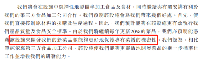 为此,绿茶称将在2022年一季度开始施工建立自营中央食品加工设施,设置这个中央加工厂的初衷之一便是加强新菜品的机密性,但目前似乎没啥进度。
