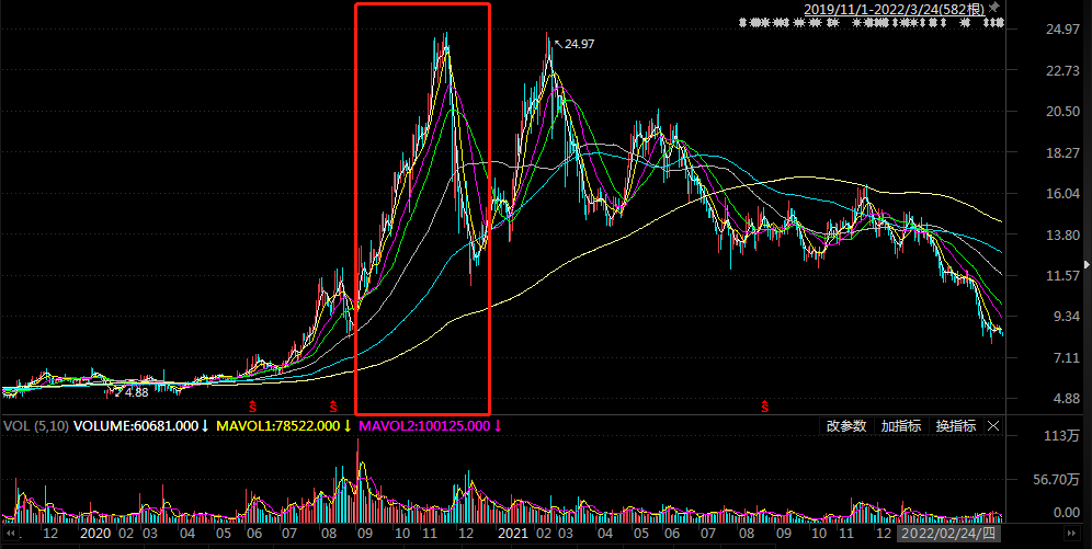 界面新闻获悉,2019年11月至2020年12月,金力泰股价大幅飙升,最初仅约5元/股,但到2020年11月24日一度爬升至24.95元/股,期间股价最高涨幅近400%。