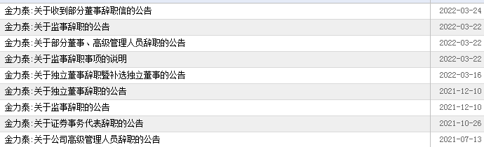 2022年3月24日,金力泰披露,于3月23日收到非独立董事刘金梅、独立董事王澜的《辞职信》。这两位恰在此前一日(3月22日)遭股东提请罢免议案。