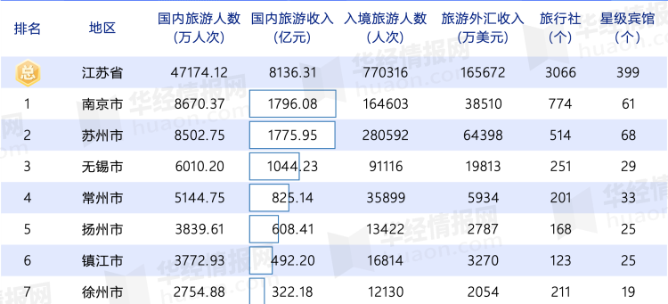 2020年江苏省各地市接待旅游人数及旅游收入排行榜,数据来源:华经产业研究院