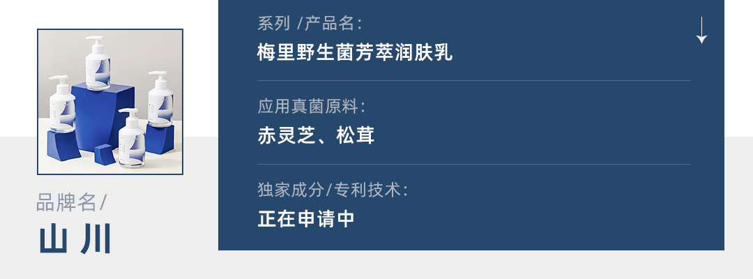 新上线的护肤品牌山川致力于探索中国本土自然成分和讲述中国本土故事,目前品牌推出了两款润肤乳,其中一款梅里野生菌芳萃应用了云南梅里的本土成分,添加了香格里拉赤灵芝提取物和香格里拉松茸提取物。