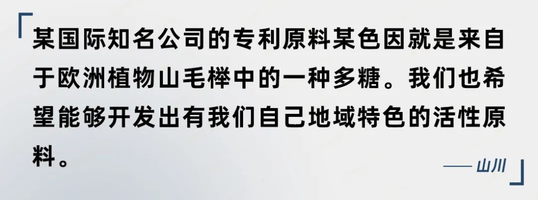 山川联合创始人卢丹也说道:“我们现在在和几家非常资深的云南特色生物植物研究机构合作,希望进一步挖掘山川特色的活性物,特别是具有云南特色的菌菇类提取物。我们与研究所在提取物的提纯和功效评价方面在做进一步的工作,把比较初步的植物提取物变成更有针对性的活性物成分。目前我们专注在灵芝三萜和菌菇的多糖上,更多细分的活性成分还要等我们的专利得到授权后进一步公布。”