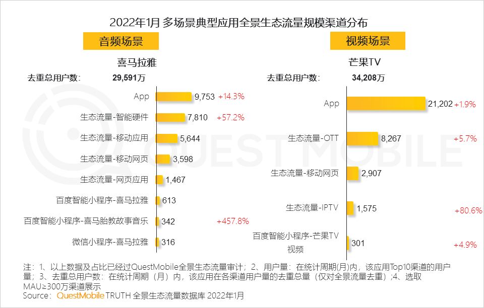 4、随着智能硬件产品发展及内容丰富度的提升,智能音箱、OTT、IPTV等生态流量价值在家庭娱乐场景中释放