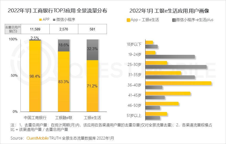 3.2 工商银行同时布局APP和小程序端,不同的使用方式匹配各类年龄段用户