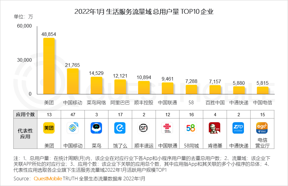 6.1 生活服务行业,三大通信运营商通过激励活动刺激用户下载使用,物流网络在小程序流量加持下,覆盖亿量级用户