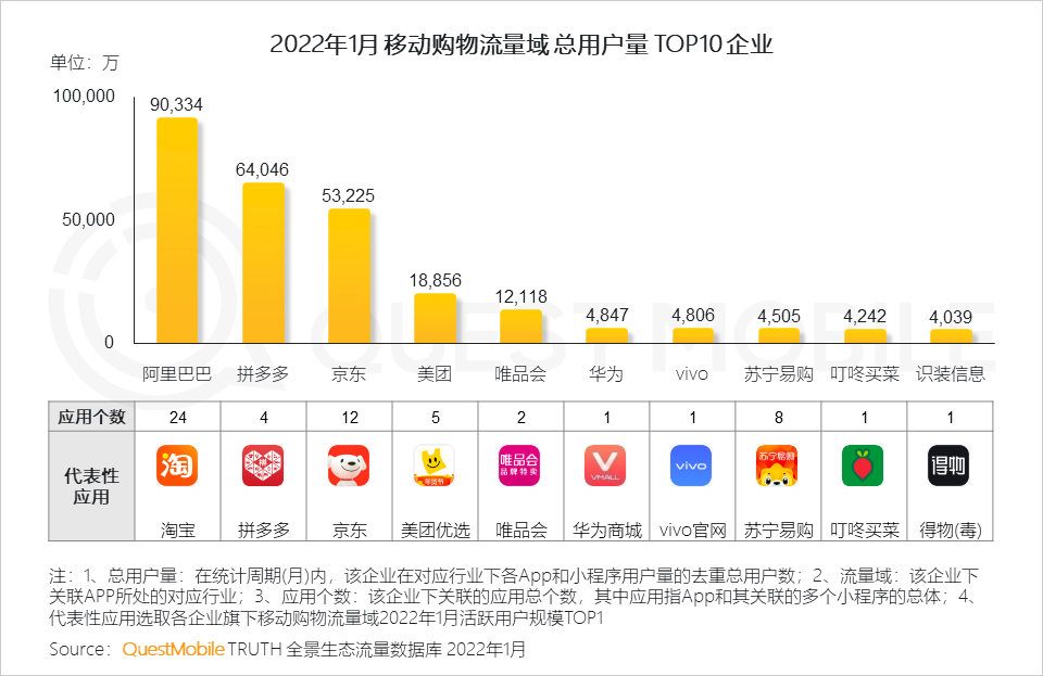 移动购物行业,头部平台APP端产品矩阵建立流量领先优势,小程序流量抢占同城零售新战场
