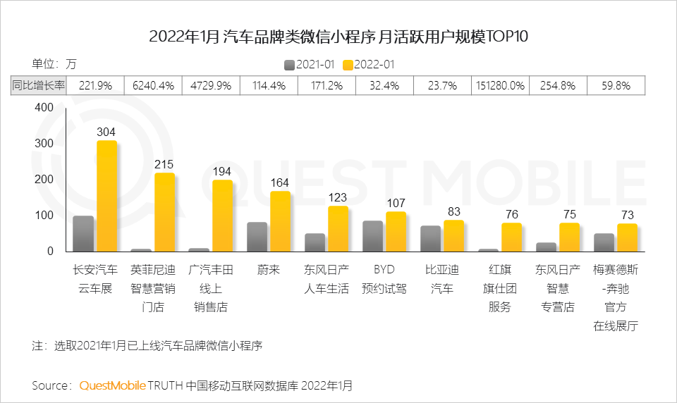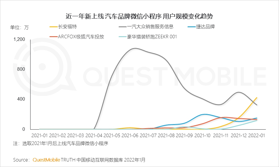 3、汽车品牌加速线上营销布局,经典车企、新锐势力等发力小程序,微信小程序端流量增长显著