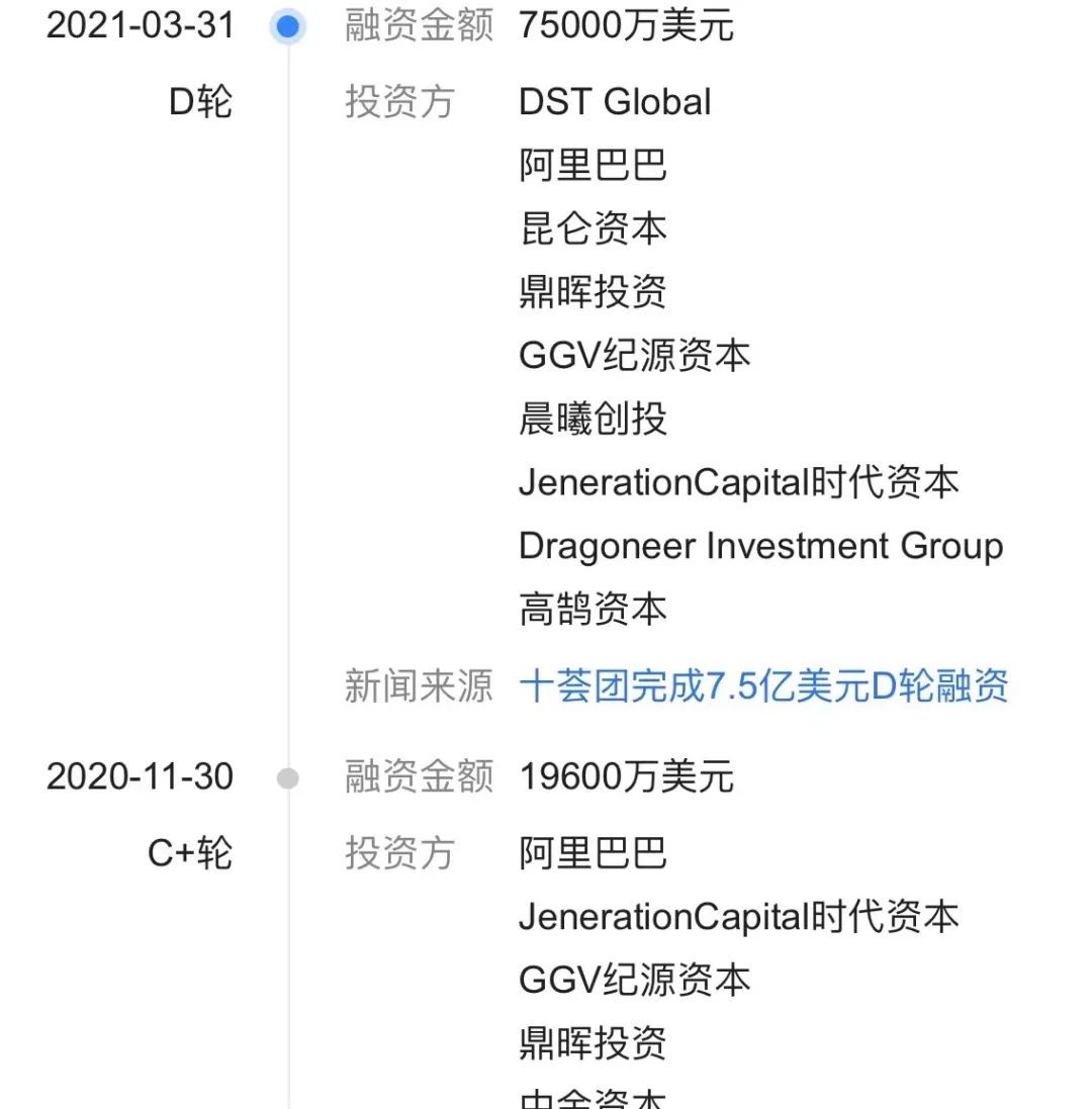 十荟团融资历程,图源爱企查