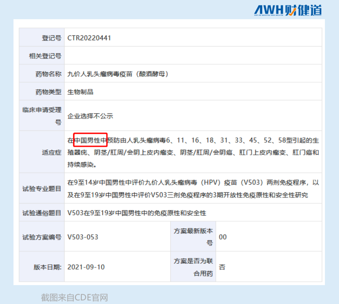 默沙东去年9月就提交了针对男性用户的九价HPV疫苗大规模临床试验申请,康乐卫士针对男性的九价疫苗,也进入了Ⅰ期临床阶段。