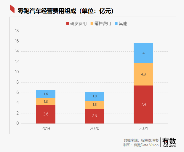 如果看零跑的成本端,销售费用的激增代表着口碑战略,而研发费用的增长则是实现全栈自研的基石。