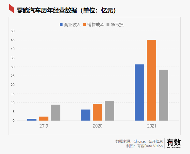 招股书显示,零跑汽车最新的营收为31.2亿元,同比增速395%,在营收增长的同时,亏损增速高达159%,净亏损28.5亿元。报告期的三年内,零跑毛利分别为-95.7%、-50.6%和-44.3%,差不多也是卖一辆亏半辆的水平。