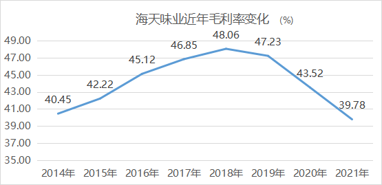 海天味业2021年整体毛利率减少3.73个百分点至39.78%;整体净利率26.68%,同比下降了1.44百分点。