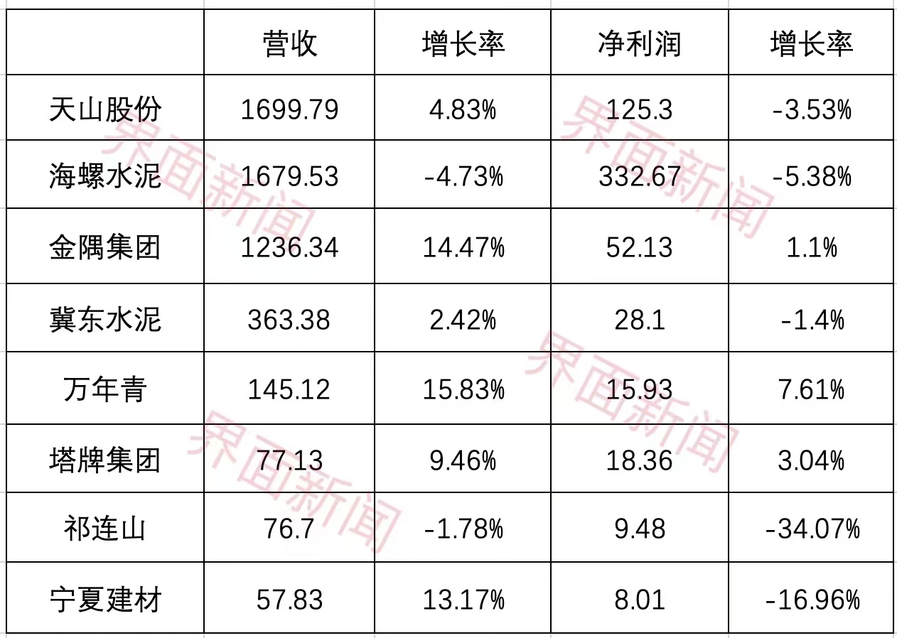 据界面新闻了解,海螺水泥及中国建材集团旗下公司的水泥产品覆盖市场区域广,受市场波动的影响也更大。