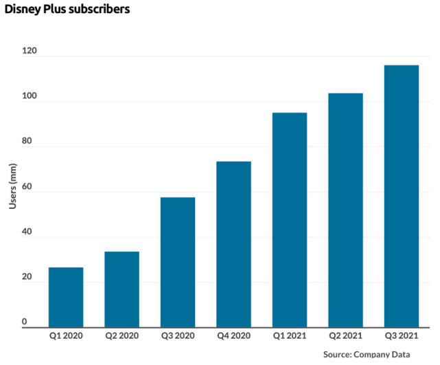 「Disney+」的订阅用户总量变化 数据来源:Techspot