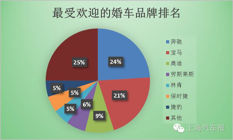 由于婚庆头车的来源较为复杂,缺乏对于品牌的相关统计,因此笔者采用了根据百度图片搜索的前100台婚车品牌(不包括不可辨识品牌的车辆)进行统计的数据,从而得到了如下结论:
