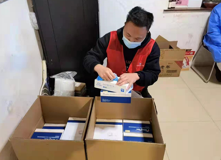 抗原检测还没开始,他就先在小区里帮忙分发快递加速物资流转,到了下午他又和志愿者们齐坐一堂,共同学习如何进行抗原检测操作。夜幕降临,忙碌了一天的他身穿大白服,仍在和志愿者们一起挨家挨户上门发放抗原检测板。