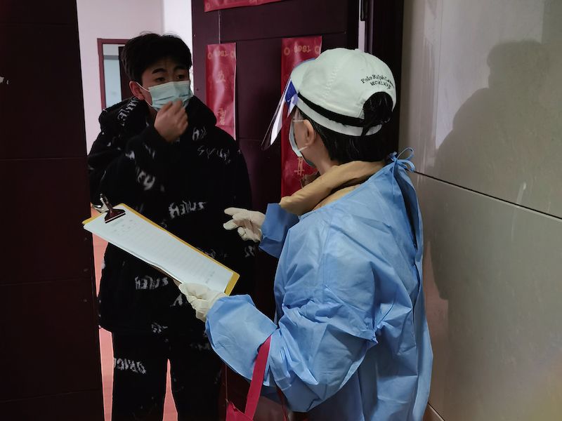 3月26日一早,陈琦便第一时间投入到了小区抗原检测的支援工作。从早上7点到下午5点,陈琦在小区内主动上门、挨家挨户统计每户居民抗原检测人数,一遍又一遍、不厌其烦地传达检测注意事项、操作方法、时间安排和具体要求。遇到无法独立完成自测的老年人,她逐一记录在册,便于后续及时提供必要帮助;对于紧急就医和寻求协助的居民,她主动协调各方,做好解释和帮扶工作。在陈琦看来,自己做的事微不足道,她希望能担起肩上的责任,为市民群众的健康保驾护航,这也是一种幸福。