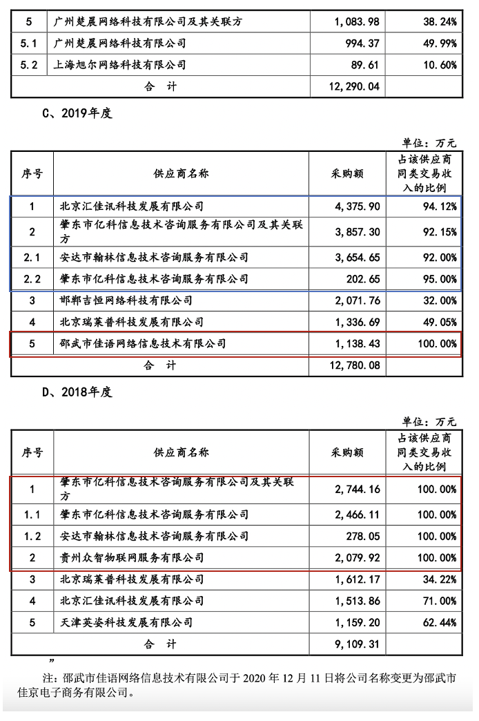 然而新三板挂牌期间,电旗股份却将飞科信息及其关联方作为单独供应商披露,并未合并计算。